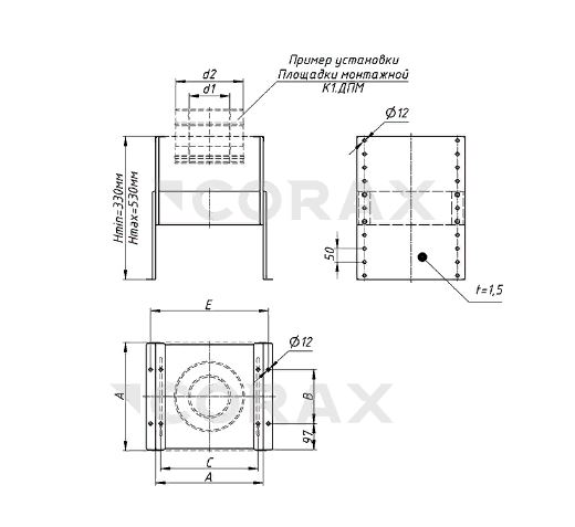 Используется как опорный элемент совместно с монтажной площадкой, установка опоры осуществляется на горизонтальную плоскость. Имеет возможность регулировки по высоте.