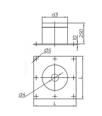 Используется в качестве разделки дымового канала, установленного в потолочном перекрытии из горючего материала.