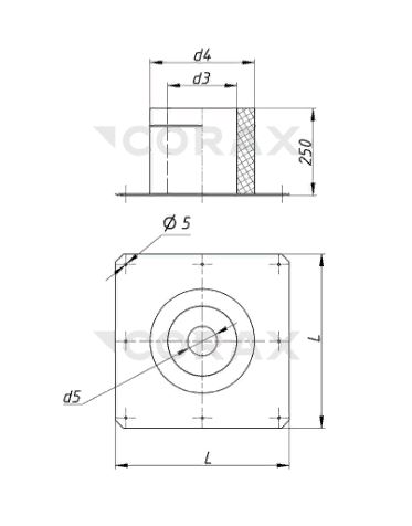 Используется в качестве разделки дымового канала, установленного в потолочном перекрытии из горючего материала.