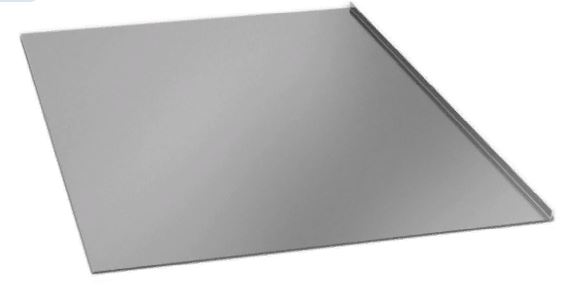 Для защиты пола перед дверцей печи от искр и выпадающих угольков при открытии дверцы. Толщина металла 0,8 мм, оцинкованная сталь