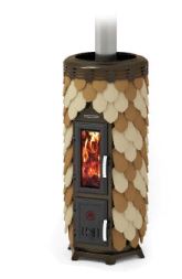 Модификация, изготовленная из нержавеющей жаростойкой стали с чугунной дверью, глиняные изразцы конвектора 2х цветов «шамот-терракота». Отличается отсутствием декорированного изразцами дымохода в комплекте.