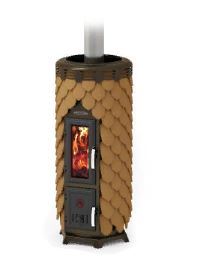 Модификация, изготовленная из нержавеющей жаростойкой стали с чугунной дверью, глиняные изразцы конвектора цвета «терракота». Отличается отсутствием декорированного изразцами дымохода в комплекте.