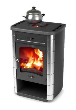 Модификация печи с конвектором цвета «антрацит», с нержавеющими вставками и чугунной варочной поверхностью
