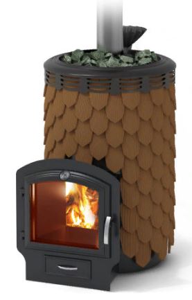 Модификация, изготовленная из нержавеющей жаростойкой стали с закрытой каменкой. Имеет чугунную дверь и большой светопрозрачный экран, глиняные изразцы конвектора цвета «терракота». Отличается отсутствием декорированного изразцами дымохода в комплекте.