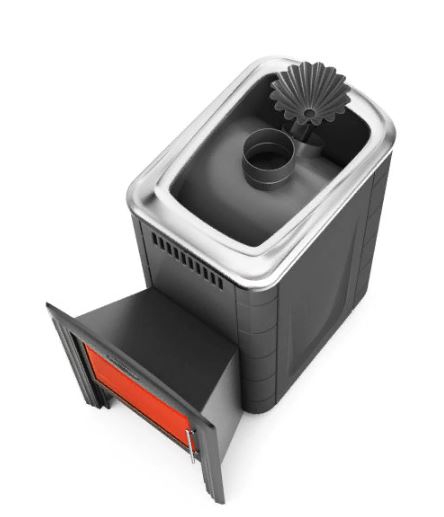 Модификация печи «Ангара 2012» с закрытой каменкой и большим светопрозрачным экраном, конвектором цвета «антрацит»