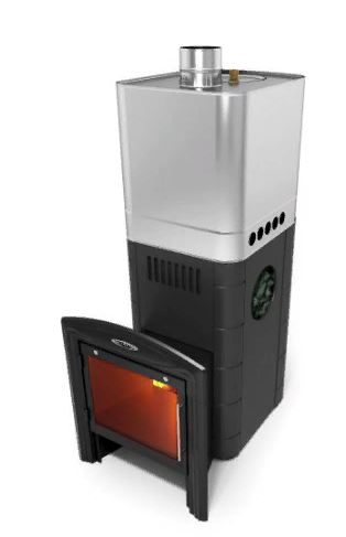 Модификация печи «Бирюса 2013» с закрытой каменкой и большим светопрозрачным экраном, конвектор цвета «антрацит»