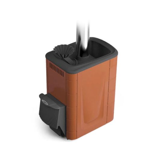 Модификация печи «Гейзер 2014» с коротким топливным каналом для топки прямо из парной и конвектором цвета «терракота»