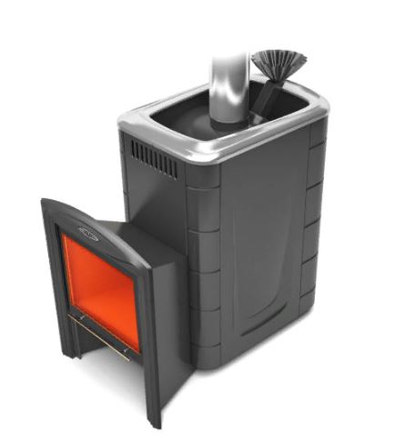Модификация печи «Гейзер 2014» с закрытой каменкой, большим светопрозрачным экраном, конвектором цвета «антрацит»