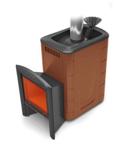 Модификация печи «Гейзер 2014» с закрытой каменкой, большим светопрозрачным экраном, конвектором цвета «терракота»