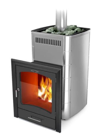 Печь банная камин Калина Inox с большим светопрозрачным экраном, нержавеющий конвектор, передняя рамка антрацит