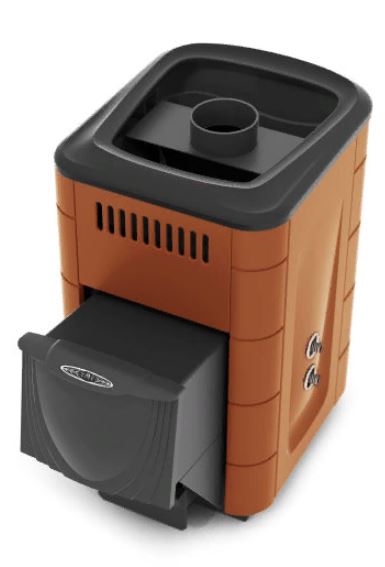 Модификация печи «Компакт 2017», отличающаяся наличием конвектора цвета «терракота» со встроенным теплообменником для нагрева воды в выносном баке