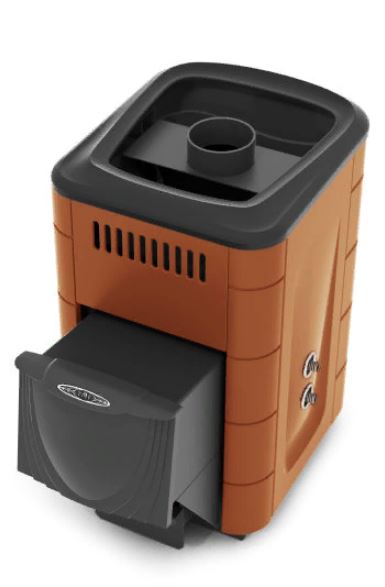 Модификация печи «Компакт 2017», отличающаяся наличием конвектора цвета «терракота» со встроенным теплообменником для нагрева воды в выносном баке