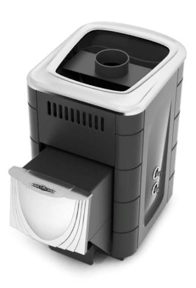 Модификация печи «Компакт 2017», имеющая встроенный теплообменник для нагрева воды в выносном баке, дверцу из нержавеющей стали и конвектор цвета «антрацит»