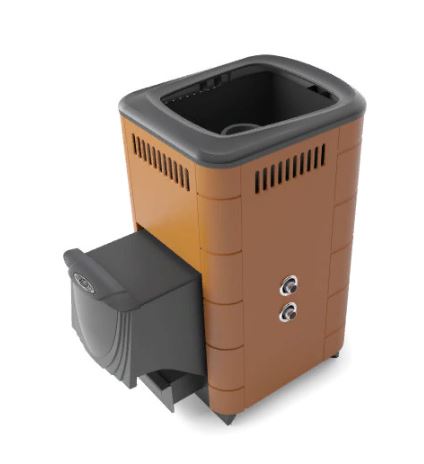 Модификация печи со встроенным теплообменником, дверцей антрацит, конвектор цвета «терракота»