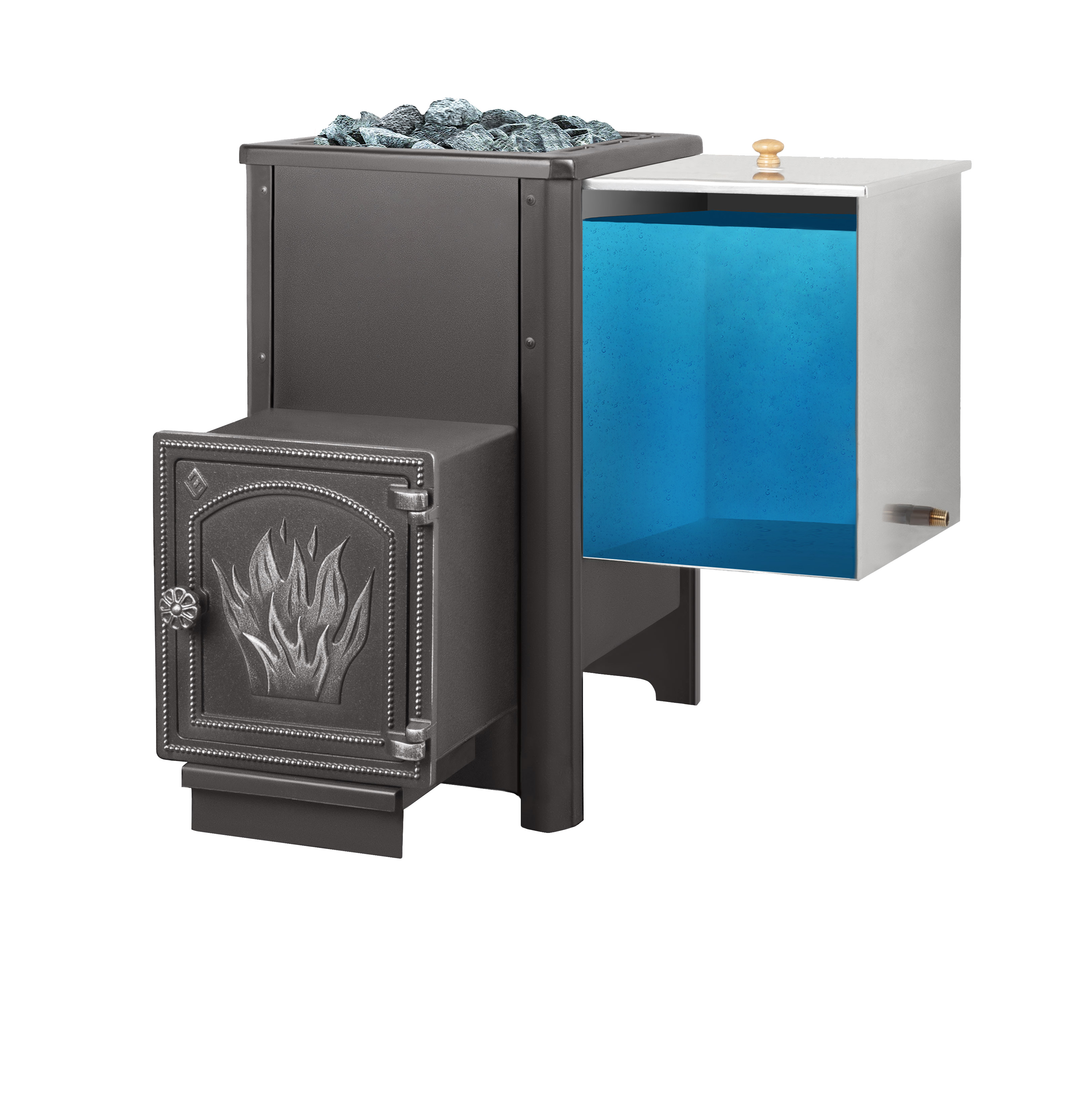 7. В комплекте идёт навесной бак для воды (40 литров) который устанавливается с правой или левой стороны печи.