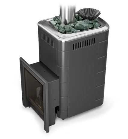 Модификация печи «Таймыр 2017» с закрытой каменкой и большим светопрозрачным экраном, конвектор цвета «антрацит»