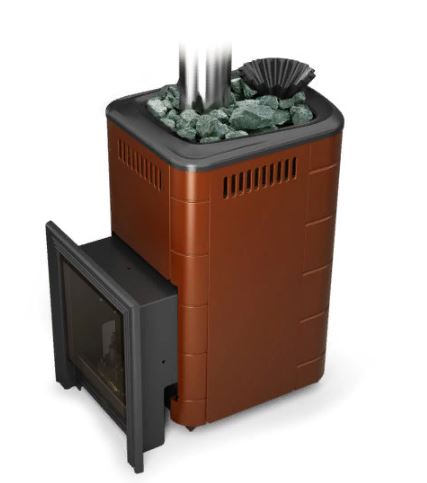Модификация печи «Таймыр 2017» с закрытой каменкой и большим светопрозрачным экраном, конвектор цвета «терракота»