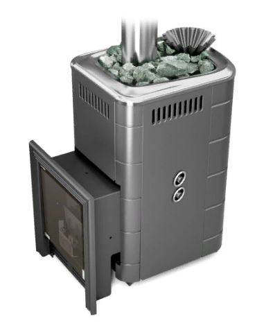 Модификация печи «Таймыр 2017», имеющая встроенный теплообменник для нагрева воды в выносном баке, конвектор цвета «антрацит»