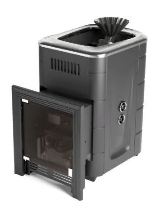 Модификация печи «Таймыр Мини 2017», имеющая встроенный теплообменник для нагрева воды в выносном баке, конвектор цвета «антрацит»