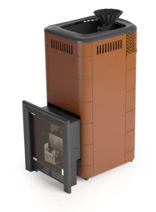 Модификация печи «Таймыр XXL 2017» c закрытой каменкой и большим светопрозрачным экраном, конвектор цвета «терракота»